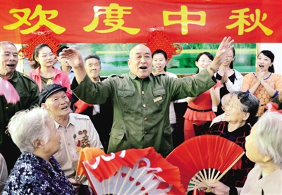 | 9月19日,河北迁安市迁安镇光荣院里其乐融融,该市20多名志愿者与居住在这里的孤寡老人和老荣军一起,表演文艺节目欢度中秋。 |