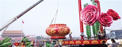 | 9月19日,北京天安门广场,国庆花坛正在紧张布置中。今年的广场花坛将实行“瘦身”,花卉摆放数量大幅减少。 |