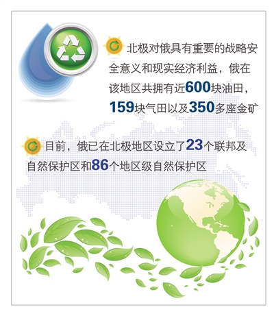 作为北极圈内国家,俄罗斯北极地区占俄领土的18%,到目前为止俄在该地区共拥有近600块油田,159块气田以及350多座金矿,北极对俄具有重要的战略安全意义和现实经济利益。近年来,俄开始逐步加大对北极地区生态环保的关注和投入。首先,在普京总统的倡议下,俄于2010年启动了对北极地区的俄属领土和北冰洋海域垃圾清理计划。其次,继续寻求在北极理事会框架下加强环保合作,推动完善海洋环境监测和保护的有效机制。俄外交部负责北极事务的特命全权大使瓦西里耶夫表示,北极理事会将成立一个专门工作组以研究制定相应措施,防止北极大陆架开发带来的污染,该工作组将于年内启动,俄也将是工作组成员之一。第三,继续加强对北极地区的研究。在论坛开幕前,位于俄雅库特共和国的“萨莫伊洛夫斯基岛”研究站正式启用,将着重关注全球气候变暖条件下的冻土融化问题。俄科学院西伯利亚分院负责人阿谢耶夫表示,俄将在亚马尔—涅涅茨克自治区再新建一个研究站,推动科研活动向极地腹地延伸。第四,为保护北极地区丰富的动植物资源,俄将继续扩大特别自然保护区范围。目前,俄已在北极地区设立了23个联邦及自然保护区和86个地区级自然保护区,到2020年俄还将再设立3个联邦自然保护区。