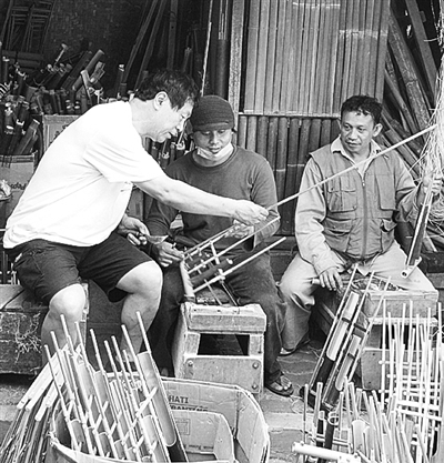 那时候,我一没资金,二没技术,三没条件,开发竹乐器有过很多困难,合适的竹子难找,制成乐器更难。没两三年我就花光了所有的积蓄,后来下了岗,我只好白天做竹乐器,晚上到大酒店去拉大贝司,当“大堂琴师”。2001年,因为太疲劳,我左手的中指在做琴时被电锯锯掉了半截,再不能拉大贝司了,但我的竹乐之路并没有终止。到今天,我们已经有了100多件竹乐器,有1000多度高温烧制的竹炭琴,有用世界最粗的巨龙竹做成的低音鼓,有像钢琴排列一样的竹板琴,还有仅一根弦的独弦琴……