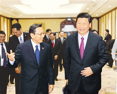 习近平表示,中印尼关系近年来发展势头良好。两国合作互补性强。我同苏西洛总统对中国印尼各自地位及两国合作的战略意义有深刻认识和高度共识,我们一致决定将两国关系提升为全面战略伙伴关系。这为两国合作开辟了新的更广阔前景。双方还要经常就全球及亚太经济形势交换看法,携手推动中国—东盟合作。相信两国合作在不远的将来一定会取得更显著效果。