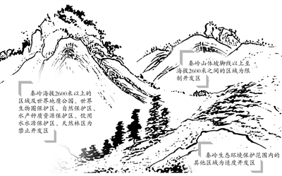 “此次《西安市秦岭生态环境保护条例》将秦岭自然资源和人文资源同时纳入保护,不但让保护实现了有法可依,而且还扩大了保护区的范围。”西安市秦岭办副主任王聪林告诉记者,按照《条例》规定,海拔2600米以上的区域及世界地质公园、世界生物圈保护区、自然保护区、水产种质资源保护区、饮用水水源保护区、天然林区为禁止开发区;秦岭山体坡脚线以上至海拔2600米之间的区域为限制开发区;秦岭生态环境保护范围内的其它区域为适度开发区。