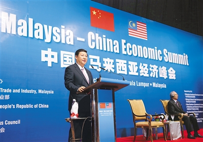 习近平在致辞中说,中马建交39年以来,互利合作不断深化。中国连续4年是马来西亚最大贸易伙伴,马来西亚连续5年是中国在东盟最大贸易伙伴,双方各领域合作均走在中国同东盟国家合作前列。