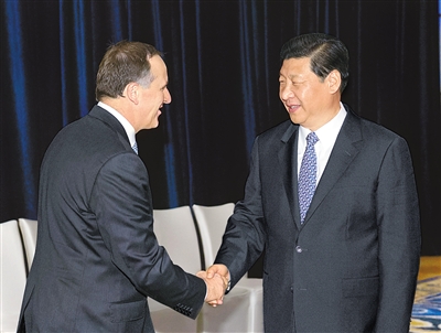 习近平表示,中方珍视同新西兰的友好合作关系,愿同新方一道,创新思维,挖掘潜力,深化经贸、投资、畜牧业、环保、旅游等领域合作,积极探讨基础设施建设领域合作,推进科技、人文、防务等领域交流,加强在多哈回合贸易谈判、气候变化、地区合作机制等问题上沟通和协调,不断提升中新关系水平。