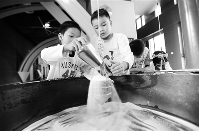10月7日,小朋友们在四川科技馆体验“沙摆群”。“十一”黄金周期间,四川科技馆推出形式多样的科普活动。 新华社记者 薛玉斌摄