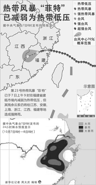 “菲特”过处风力强劲,7日凌晨,宁德北部沿海已出现大风10—12级,阵风13—15级,最大为福鼎星仔岛,现15级大风。“菲特”同时给福建部分地区带来了强降雨,从6日8时至7日1时,福建宁德北部出现暴雨和大暴雨,以福鼎佳阳160.7毫米为最大。