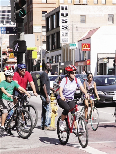 10月6日,在美国洛杉矶,人们参加“CICLAVIA”环保活动。