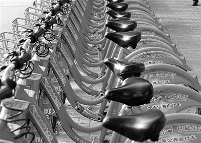 10月8日的太原市公共自行车租赁点。山西省太原市自2012年9月底启动公共自行车租赁系统以来,已开通公共自行车租赁服务点1075个,投入公共自行车23072辆,一年累计租用量突破6500万人次。