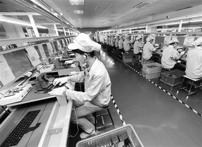 事实上,不仅在璧山,放眼整个重庆,尽管地处内陆,但电子信息产业这一东部沿海地区的优势产业,当前已经成为全市的核心产业之一。惠普、华硕等世界知名笔记本电脑品牌商,以及富士康、和硕等笔记本电脑代工商纷至沓来。统计数据显示,重庆2012年的笔记本电脑的年产量已经超过了4000万台,占全球总产量的五分之一以上。今年1月至7月,重庆市电子信息产业产值达到1511亿元,同比增长35.7%,对全市工业贡献率近40%。