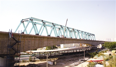 本报西宁10月13日电 记者李琛奇、通讯员周鹏报道:今天上午,随着最后一榀钢桁梁螺栓的固定到位,兰新铁路第二双线西宁跨兰西高速公路特大桥全部钢桁拼装完成,标志着我国最大跨度混凝土连续梁——钢桁组合桥胜利完工。