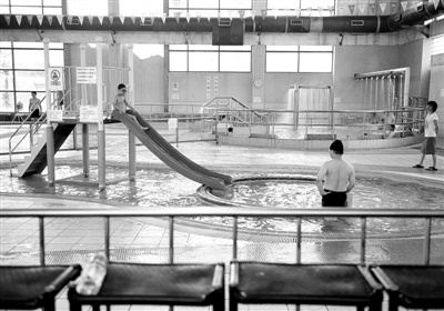 市民在台北北投垃圾焚化厂厂区内的回馈设施“温水游泳池”内休闲戏水(8月30日摄)。台湾垃圾处理经历了露天堆放、卫生掩埋和焚化三个阶段,目前,台湾有24座大型现代化垃圾焚化厂,台北有3座。 (新华社发)