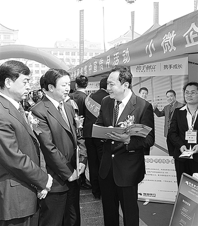 渤海银行积极开展小微企业金融服务宣传月活动,图为该行工作人员正在讲解金融知识。 赵晓逢摄