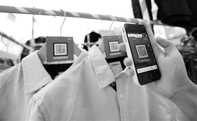 上图 10月17日,一位消费者在杭州银泰城体验线下选择,刷二维码线上下单的购物方式。