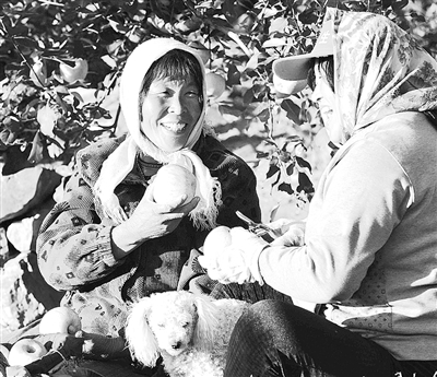 10月16日,在山东省烟台栖霞市小卧龙村苹果基地,两名果农在整理苹果。山东栖霞苹果种植面积达到70万亩,每亩苹果收入近万元。近年来,该市把苹果产业作为全市的支柱产业来培育,如今该市有40万农民直接从事苹果栽培,5000多人从事果品流通,1000多家相关企业从事苹果产业化链条拓展,累计有50万人直接受益于苹果产业。 新华社记者 范长国摄