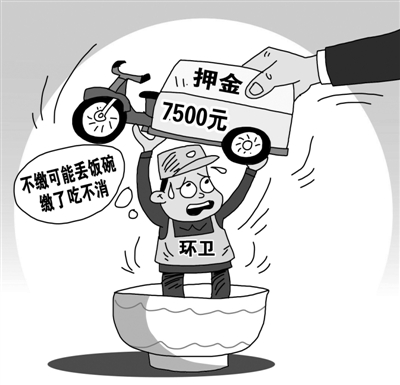 郑州市金水区环卫工人们近期新换了封闭式全自动垃圾车,但每名环卫工被告知要缴纳7500元的用车押金。这让收入低微的环卫工有点“吃不消”,但不缴又担心丢了工作。作为环卫装备,垃圾车一般该由环卫部门购置和维护。即便封闭式全自动垃圾车价格较高,环卫部门想通过缴纳押金的方式保证车辆不丢失,那也不该信口要价。况且环卫工的工资本来就不高,让他们拿出7500元的确有些勉为其难。 (时 锋)