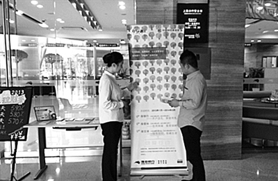 渤海银行工作人员正在向客户介绍“‘绿爱林’——您用网银我帮捐树”活动内容,鼓励客户使用电子银行,体验绿色金融。 张东方摄
