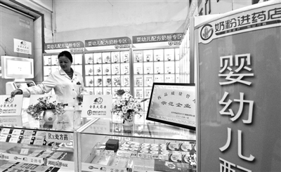 10月25日,北京金象大药房西四北店店长王萍在整理柜台。10月26日起,“奶粉进药店”活动将在北京市启动,消费者可以在4家连锁药店企业的5家门店购买到11个品牌的婴幼儿配方奶粉。市民可以在这些药店的试点自动售货机上购买到品牌婴幼儿奶粉,还可以通过专用二维码看到奶粉的基本信息。