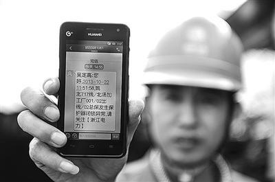 国网浙江长兴县供电公司工作人员在展示手机上收到的智能型剩余电流保护器发送的故障信息。智能型剩余电流保护器是一种带有通信功能的新型保护器,可每隔15分钟对农村低压电网设备进行体检,第一时间发送告警短信。 新华社记者 徐 昱摄
