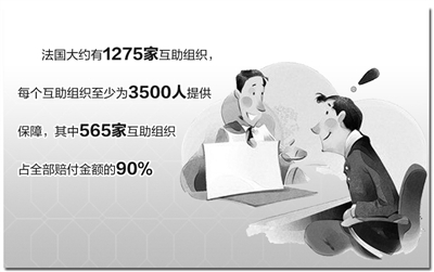 目前,法国大约有1275家互助组织,每个互助组织至少为3500人提供保障,其中565家互助组织占全部赔付金额的90%。原则上,这样的互助组织都是非盈利性的,因此就不会像商业性的保险公司那样进行保险风险评估,但对于高龄申请者仍然会收取适当的费用,但不能以性别和健康状况作为收取保费的标准。