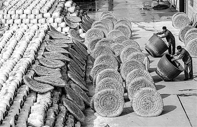 10月30日,古越龙山沈永和酒厂的工人在码放和清洗酒坛。立冬来临前夕,中国黄酒之乡——绍兴的众多黄酒酿造企业纷纷启动“冬酿”,这意味着绍兴迎来了一年一度的黄酒开酿时节。
