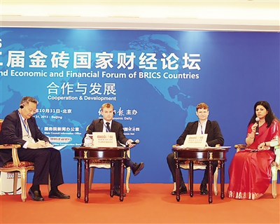 图为嘉宾在有关金融主题的圆桌会上发言。