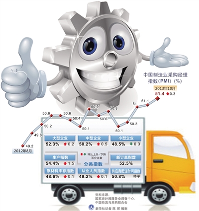 本报北京11月1日讯 国家统计局服务业调查中心、中国物流与采购联合会11月1日发布报告,10月份中国制造业采购经理指数(PMI)为51.4%,比上月上升0.3个百分点,连续4个月回升,为18个月以来的新高,表明我国制造业经济稳中向好。