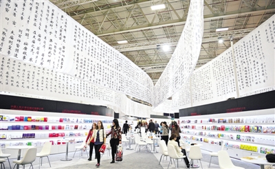 11月2日,在土耳其伊斯坦布尔,观众在中国主宾国展区内参观。第32届伊斯坦布尔国际书展2日开幕。中国以主宾国身份参展,并打出“新丝路,新篇章”的主题语。100多家中国出版企业携近年来发行的5000多种优秀出版物,展现中国文化艺术成就与魅力。 新华社记者 卢 哲摄