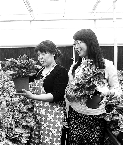 上图 江苏省南京市汤山翠谷现代农业示范园区规划面积3万亩,园区紧扣有机农业概念,将生态种植养殖与休闲度假结合,全面推广绿色、有机生产。目前,园区有现代农业创意馆、花卉馆、植物工厂、生态餐厅等项目,吸引城乡居民体验现代农业。图为汤山翠谷现代农业示范园区的智能温室花卉馆内,工作人员在为游客挑选花卉。 本报记者 赵 晶摄