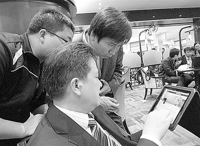 为了进一步说明照片自动上传的神奇,何春银与台下一名技术人员同时用手机拍照,台上台下2张不同角度的照片瞬间就显示在大屏幕上,还附带有位置信息,参会的“小伙伴们”都很震惊。