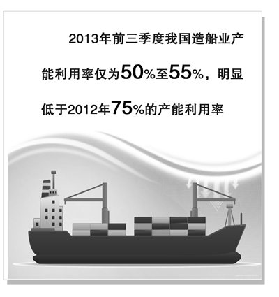 点评:中国船舶工业行业协会发布的数据显示,2013年前三季度我国造船业产能利用率仅为50%至55%,相较2012年75%的利用率降低了约20个百分点,远远低于国际造船业通常的产能利用率。