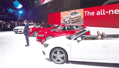 11月20日,在美国举行的2013洛杉矶车展上,奥迪公司展示A3汽车。当日,洛杉矶车展在洛杉矶会展中心开展,共有超过50款车型在本届车展全球或北美首发,车展约有800辆至900辆汽车展出,展场面积约为8万平方米,8000余名汽车产业高层人士参加展会。洛杉矶车展作为北美三大车展之一,每年吸引大约100万人次参观。