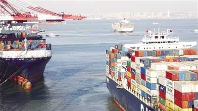 11月7日,青岛港集装箱码头一角。青岛港口吞吐量已居世界港口第七位。
