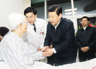 两天来,习近平一直关注着事故抢险工作,惦记着在事故中受到损失的群众。24日下午,习近平一抵达青岛,就在山东省委书记姜异康、省长郭树清陪同下,来到青岛大学附属医院黄岛分院,看望慰问伤员、医护人员和遇难者家属。他走进病房,先后来到受伤群众姜瑞芬、薛淑美、徐之泰、孙桂山病床前,同他们亲切握手,仔细查看伤情,鼓励他们配合治疗、安心养病。习近平同医疗专家代表一一握手,肯定他们关键时刻迅速行动、连续作战、不怕疲劳的救死扶伤精神,希望他们劳逸结合、科学调度、再接再厉,确保每个伤员都得到精心治疗。习近平在看望遇难者家属时,对他们亲属的不幸遇难表示哀悼,希望他们节哀制痛、树立生活信心,表示党和政府一定会尽最大努力安排好大家工作生活。他要求有关部门要一家一家把善后工作做细做实。