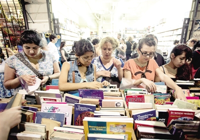 在阿根廷首都布宜诺斯艾利斯,人们选购书籍。布宜诺斯艾利斯日前举行第七届“书店之夜”活动,活动持续到当天深夜,数万市民从容畅游书海,度过了一个轻松愉快的周末夜晚。