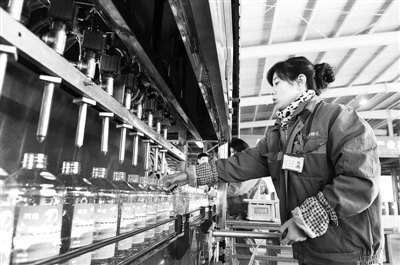 12月3日,辽宁润迪精细化工有限公司生产车间员工正在进行灌装作业。近年来,该公司自主研发多项产品,其中具有国四标准的商用车专用尿素溶液,可有效降低汽车尾气污染。