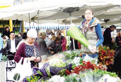 在比利时小镇布鲁日,假日里的广场成为花市。一边是古色古香的古老建筑,一边是清香扑鼻的美丽花束,吸引着人们前来赶集。 本报记者 张小影摄