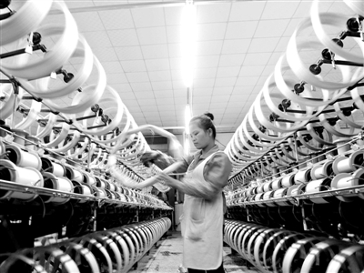 工人在宜州市广西嘉联丝绸有限公司织绸车间工作(12月5日摄)。