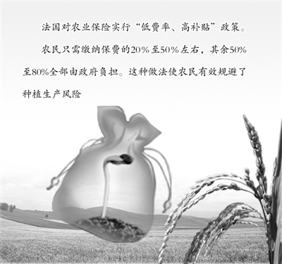 农业种养易受自然灾害等不可抗力因素冲击,是相对弱质产业,法国的做法是通过农业保险有效规避种植风险。法国对农业保险实行“低费率、高补贴”政策。农民只需缴纳保费的20%至50%左右,其余50%至80%全部由政府负担。这种做法使农民有效规避了种植生产风险,充分调动了农民生产的积极性。同时,在农业保险机构中植入政策性扶持,不以营利为目的,使农业保险不同于纯粹意义上的商业保险。因此,法国政府建立了政策性农业保险机构,其行政经费、农险基金赤字等都由政府实行直接的财政补贴。国家每年要做一次保险预算,总额在保费的20%至50%,用于满足国营保险公司入不敷出时的急需,从而有力地保障了农业保险机构业务的开展。