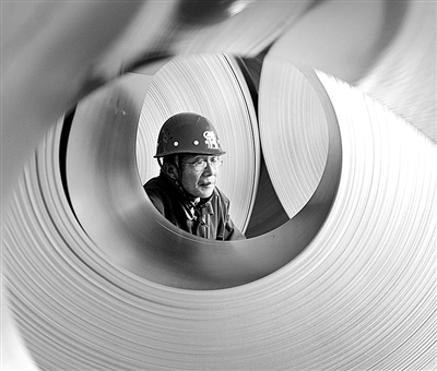 12月8日,在湖南娄底市涟源钢铁集团冷压板生产线上,质检人员正在检验板卷钢材产品。近年来,该集团坚持自主创新开发新产品,今年前10个月,涟钢品种钢销售103.8万吨,销售额同比增长5200万元。