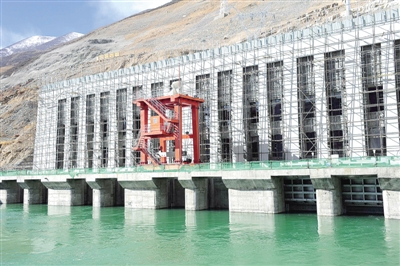图为西藏旁多水利枢纽工程装机室外景(12月10日摄)。