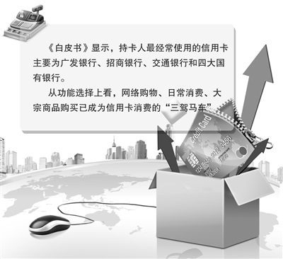据《白皮书》显示,各家银行的信用卡业务正从粗放式发展转为精细化经营,各种服务及功能创新层出不穷,说明信用卡行业完成了从追求“量”到追求“质”的华丽变身,且二三线城市渐成为信用卡发卡的主要战场。同时,用户收入越高则刷卡消费金额越大,以一线城市高端用户用卡频次较高。从功能选择上看,网络购物、日常消费、大宗商品购买已成为当前信用卡消费的“三驾马车”。