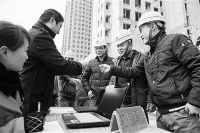 12月15日,建筑工地的外来务工人员现场登记订票信息。当日,安徽省合肥市翠庭园社区工作人员在辖区内3处工地设立“务工人员团体票代订服务点”,帮助外来务工人员解决订票的烦恼。 新华社记者 杜 宇摄