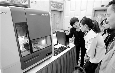 我国自主研制的“GA118-16A型法医DNA检测平台”完成大规模试用,正式投入使用,实现国产DNA检测试剂与国产仪器、消耗品的全面配套。图为在福州召开的公安部工作部署会会场,工作人员介绍该检测平台的情况。 新华社记者 林善传摄