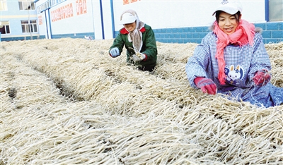 河北承德围场保承中药材种植有限责任公司的员工正在整理中药材。近年来,承德市通过“农业合作组织+公司+基地+农户”四位一体产销模式,大力发展中药材种植。目前,该市中药材种植面积达38.6万亩,生产各种药材77种,名贵药材20多种。