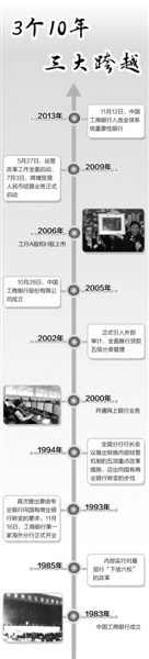 华丽成绩的背后,是脱胎换骨谋嬗变的30年,是凤凰涅槃图新生的30年。3个10年,工行实现了从国家专业银行到国有独资商业银行、再到国家控股的国际公众持股公司的历史跨越,建立了符合国情行情的现代金融企业制度,探索并走出了一条有中国特色的现代化大型金融企业的发展道路。