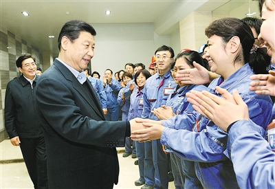 热电厂当班职工听说总书记来了,纷纷围上来向总书记问好,习近平同他们亲切握手。他深情地说,我来看望大家,就是向你们并通过你们向全国生产一线的干部职工致以新年的问候,向在节日期间坚守工作岗位的各条战线的同志们表示衷心的感谢。你们从事送温暖、送光明的工作,很光荣,很有意义。发展新技术、发展绿色能源,是节能减排、治理大气污染的必要措施。我们要加大投入,有定力、有耐心地把面临的问题解决好。