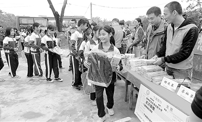 图为宁波银行近日为外来务工人员子弟学校学生发放学习用品活动现场。近年来,宁波银行将经营行为和社会责任紧密结合,开展走进社区普及金融知识,走进空巢老人家里慰问等公益活动。 本报通讯员 魏华兵摄