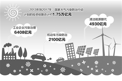 2013至2017年,国家大气污染防治行动计划的投资估算合计约1.75万亿元