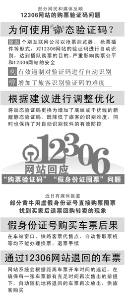 春运火车票开始售卖以来,12306购票网站持续受到社会关注。有旅客反映网站不稳定、网站购票验证码看不清、“黄牛”用假身份证囤票等,记者就此采访了12306网站负责人。