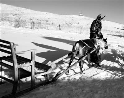 牙克石呼伦贝尔大草原零下40℃的寒冬清晨,拉着驯鹿雪橇的萨满族小伙子要去参加即将开幕的呼伦贝尔滑雪节。外地人来到这里,必须包裹成“粽子”,出了门,眉毛、睫毛上还是结上了霜。路面上风吹雪飘飘荡荡,当地人贴切地形容为“闹海风”。 于园媛摄